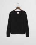 Knitted in extra fine merino wool for a super soft touch and lightweight feel, this sweater is an everyday essential designed to be layered over shirts or worn alone. Made for a regular fit in a plain jersey structure, it features a classic V-neck, ribbed detailing, and a GANT logo embroidered at the sleeve.