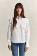 Crafted in a durable poplin weave, this shirt is essential to any preppy wardrobe. Featuring a classic tonal Gant logo embroidered at the chest, the shirt is constructed with a curved hem, regular-fitting cuffs and a point collar. The design is complete with a box pleat and our signature locker loop at the back.