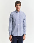Making a nod to our nautical roots, this shirt features yarn-dyed stripes and an all-over fil coupé boat pattern, connecting to this season's sailing theme. Crafted in a regular fit from crisp cotton poplin, this shirt has a button-down collar, curved hem, adjustable cuffs and a box pleat with our signature locker loop at the back. This shirt is complete with our iconic GANT shield graphic embroidered at the chest pocket.