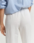 Crafted from a linen-viscose blend, these relaxed-fitting pants are a summer staple. Designed for an easy pull-on style, they feature an elasticated waistband with a mid-rise waist and a straight leg. Details include front slanted pockets, creases at the leg and a high hem stitch detail.
